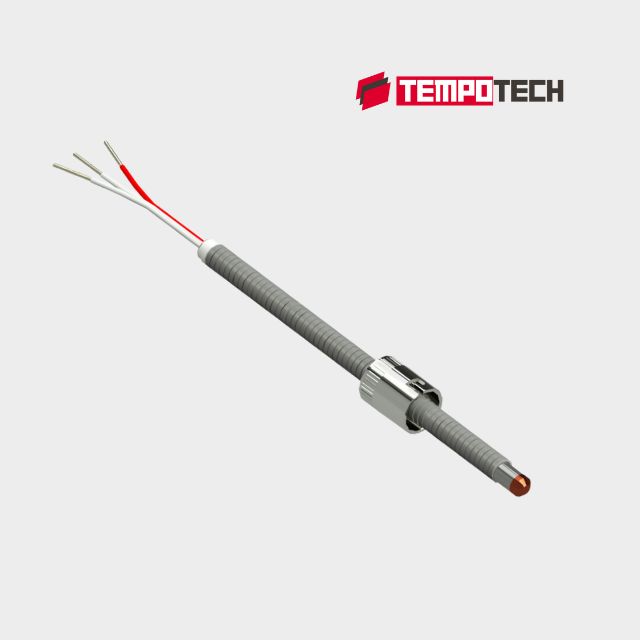 BRTD44 – Copper Tip RTD with Armor and Twist Lock Bayonet is a resistance temperature detector specifically designed for bearing temperature or other rotating shaft temperatures. The copper tip probe is inserted directly into drilled holes (such as bearing housing, machine components) or the process. The copper tip design allows small changes in temperature to be detected quickly, helping to avoid major damage to the bearing or shaft.