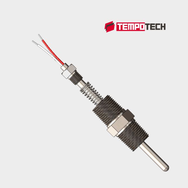 3 Wire RTD, Spring Loaded Nipple Threaded, stainless steel sheath, 1/2in male NPT process connection.
